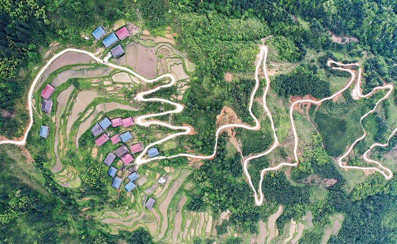 脱贫致富靠发展,发展先行是交通,交通扶贫使贫穷的地方告别“出行难”。图为2020年5月12日拍摄的广西融水苗族自治县同练瑶族乡大坪村下大弄屯的通屯公路。新华社记者 黄孝邦/摄